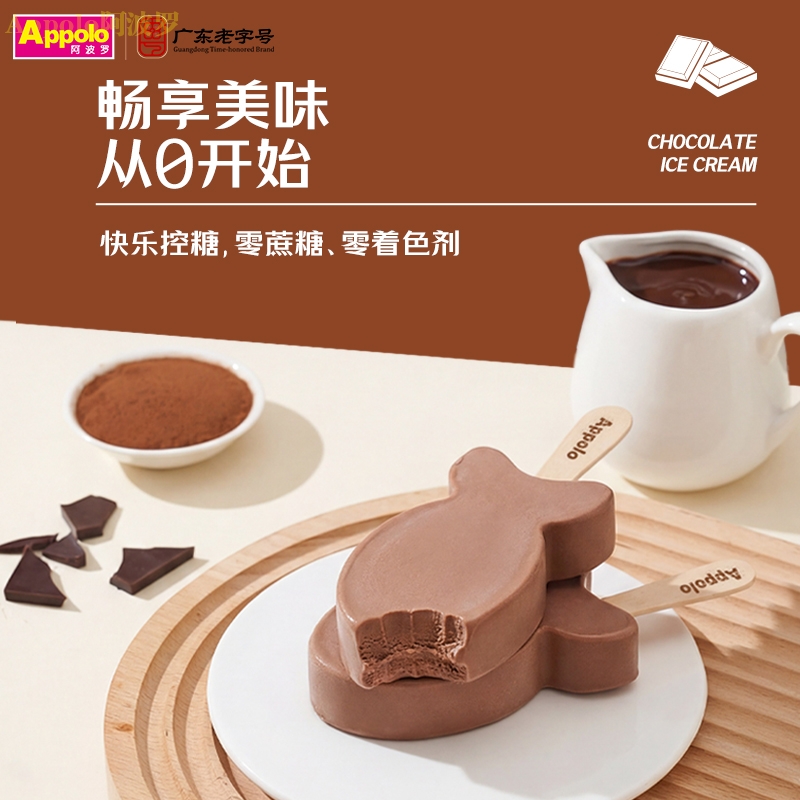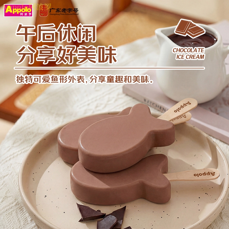 Q萌鱼形外表将美味与童趣巧妙融合,0蔗糖添加,0着色剂,产品的色泽完全是原料可可粉赋予的,冰淇淋口感绵密细腻,带来浓郁而纯正的巧克力风味。