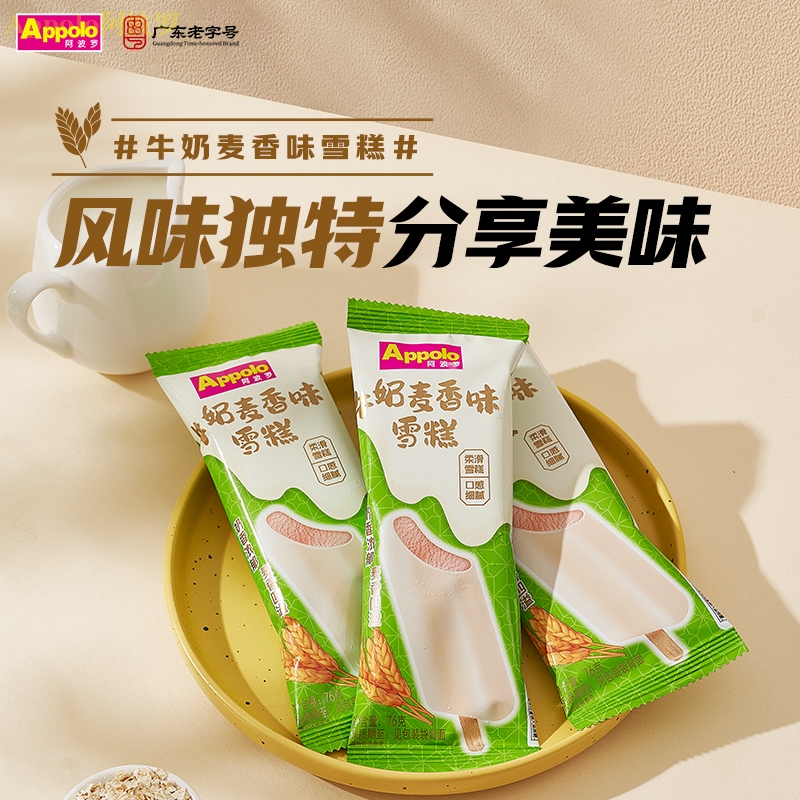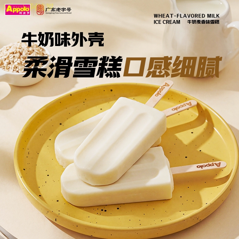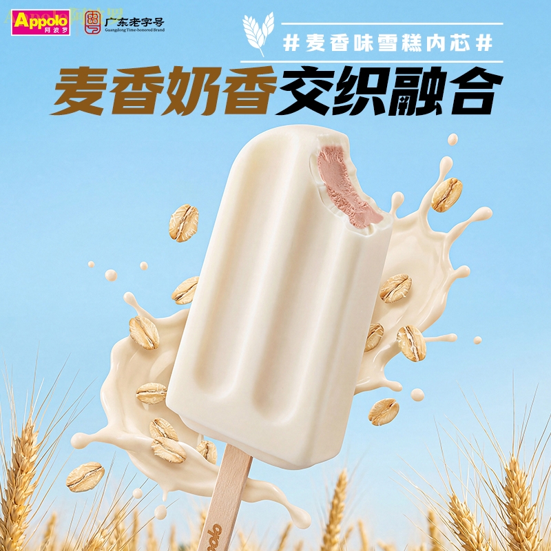 牛奶味雪糕外壳口感顺滑,奶香纯正,麦香风味雪糕内芯,还原谷物烘焙后的温暖香气,风味独特,牛奶的香甜与小麦的清香相互衬托,带来踏实而温暖的满足感。
